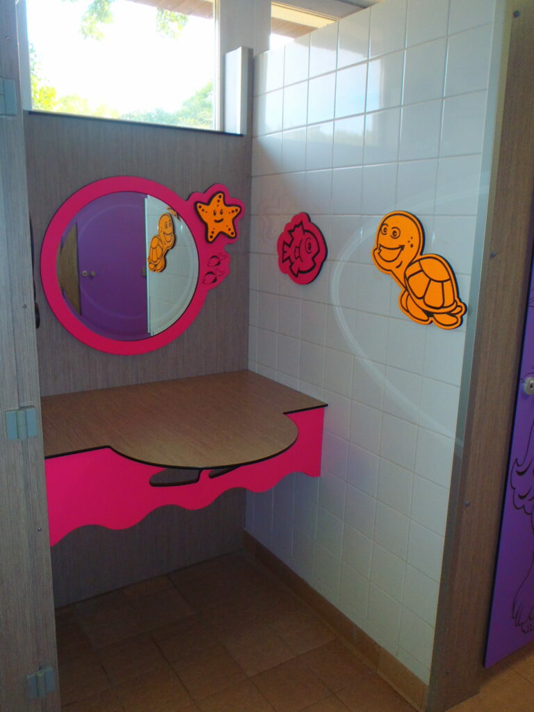 Deux blocs sanitaires rénovés récemment et accessibles à tous (douche et WC PMR, change bébé, toilette enfant…)